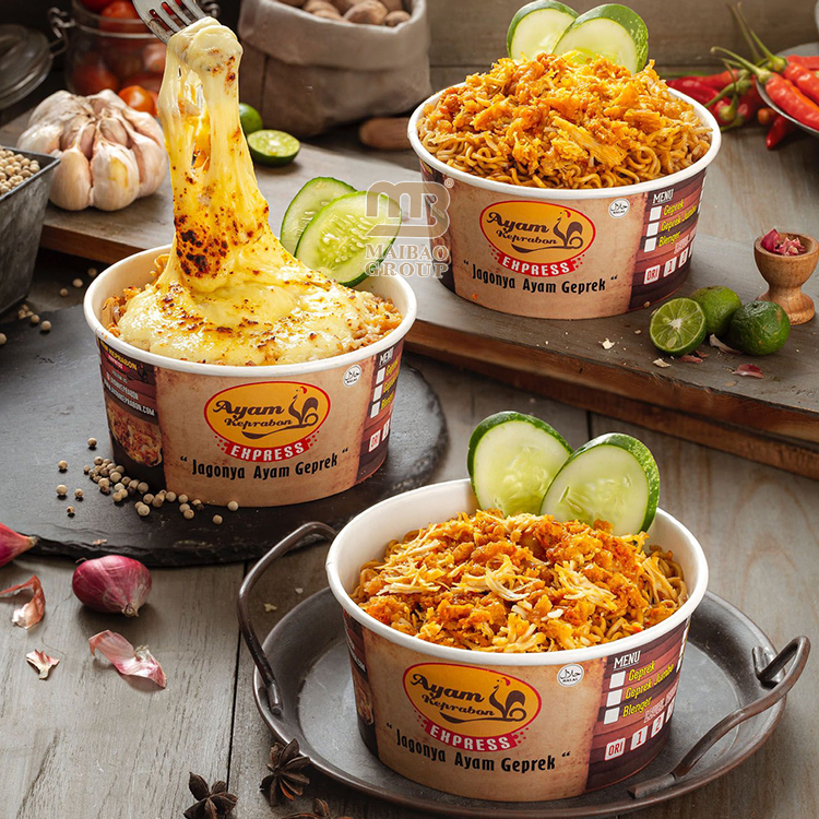 Bol en papier Kraft biodégradable 750ml pour aliments chauds, récipient à emporter jetable, tasse de soupe en papier 250ml avec couvercle